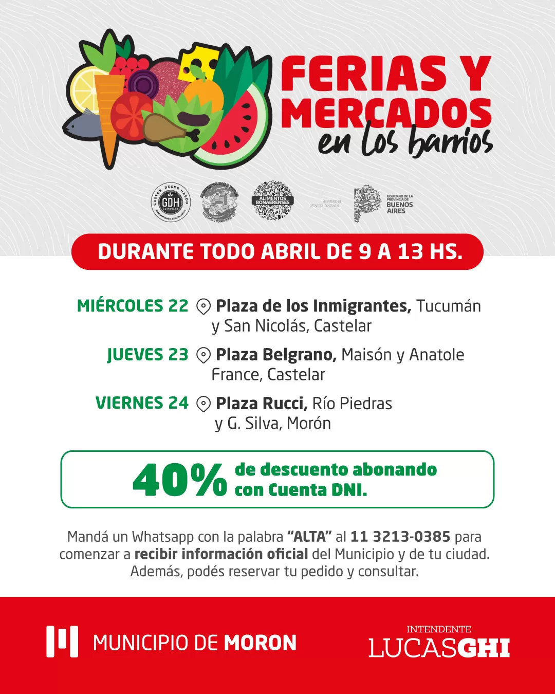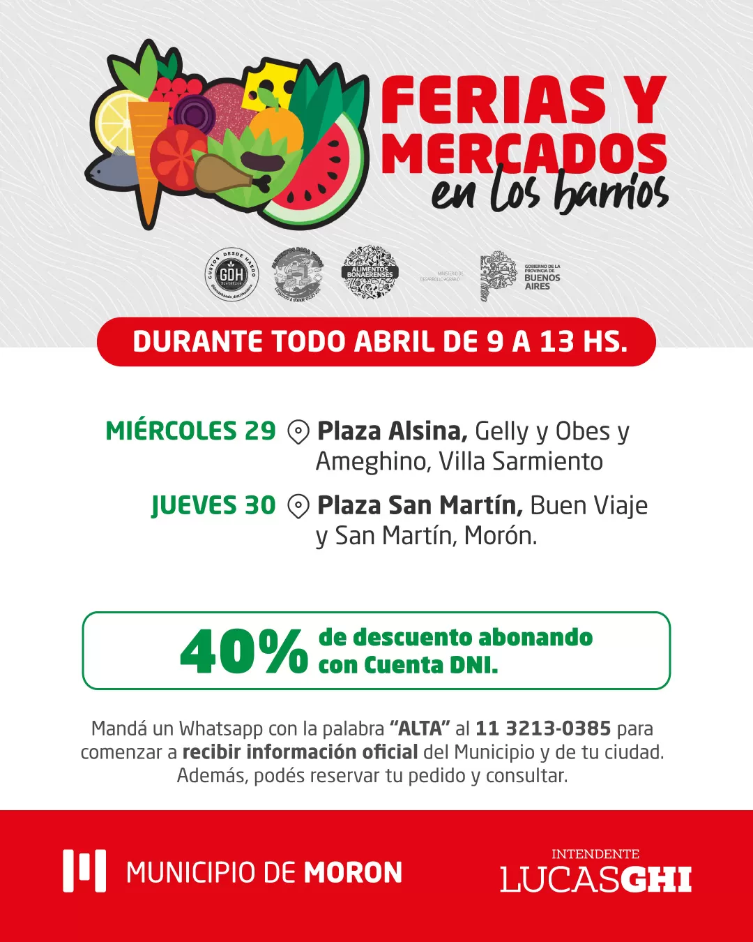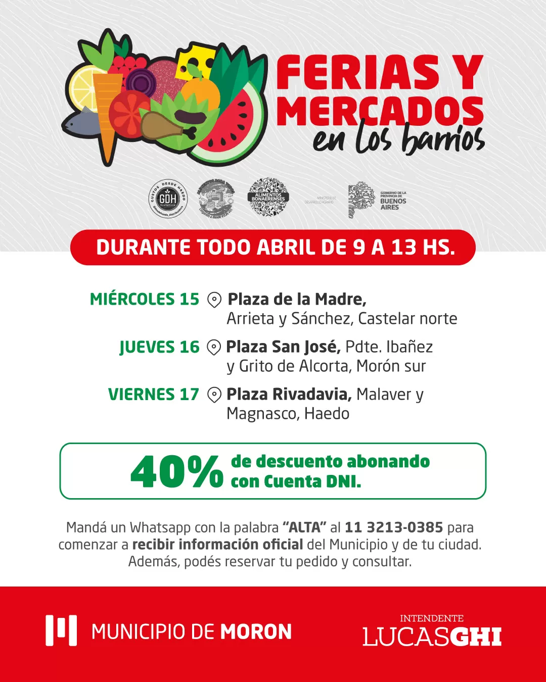 El siguiente es el cronograma de Mercados Bonaerenses en Morón, para abril: