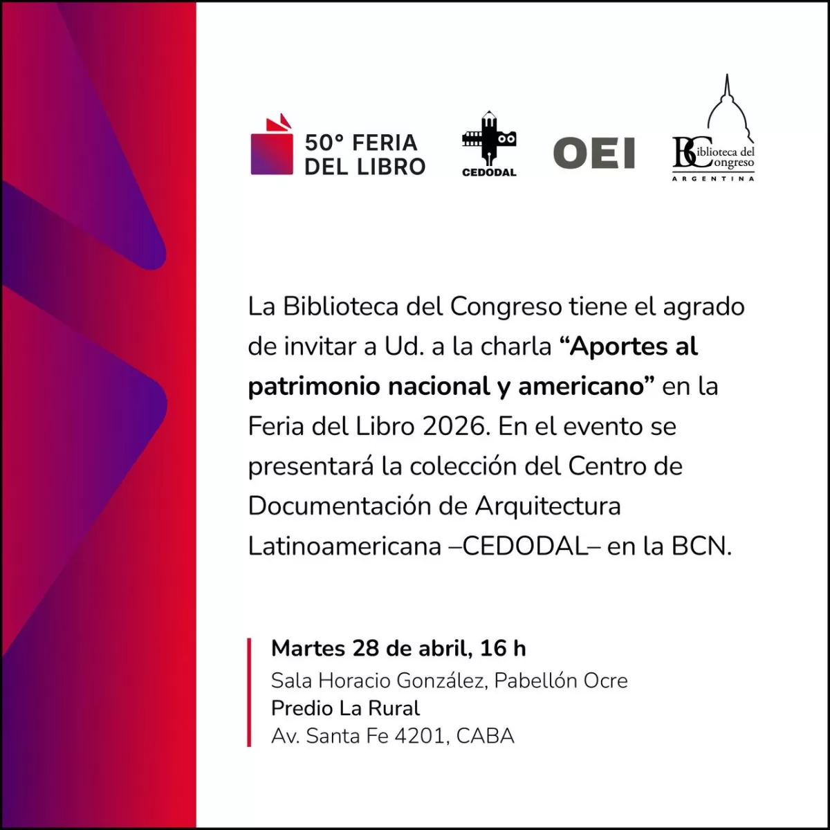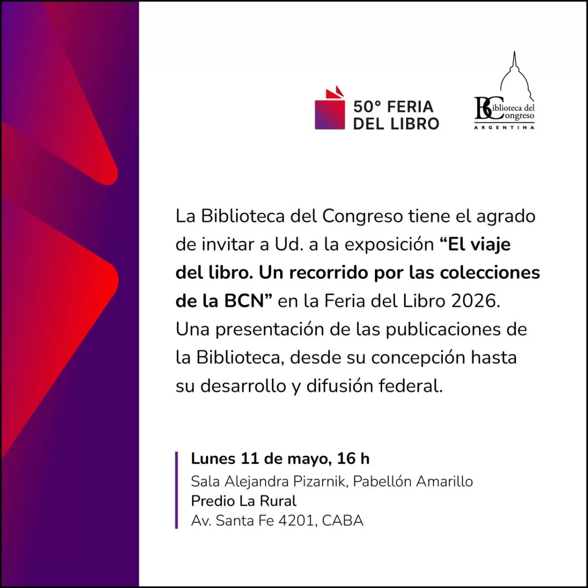 Con esta programación, la Biblioteca del Congreso de la Nación reafirma su compromiso con la democratización del acceso a la información, la promoción del pensamiento crítico y la valorización del patrimonio cultural, en el marco del principal encuentro editorial del país.