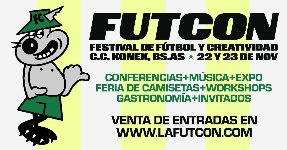 Festival de Fútbol y Creatividad Un evento que reunirá durante dos jornadas lo mejor de la moda, el diseño, la música, la fotografía, el arte y el gaming. Habrá charlas, conferencias, muestra de arte, feria de camisetas y experiencias, que lo convierten en un punto de encuentro inédito para la comunidad creativa del fútbol.