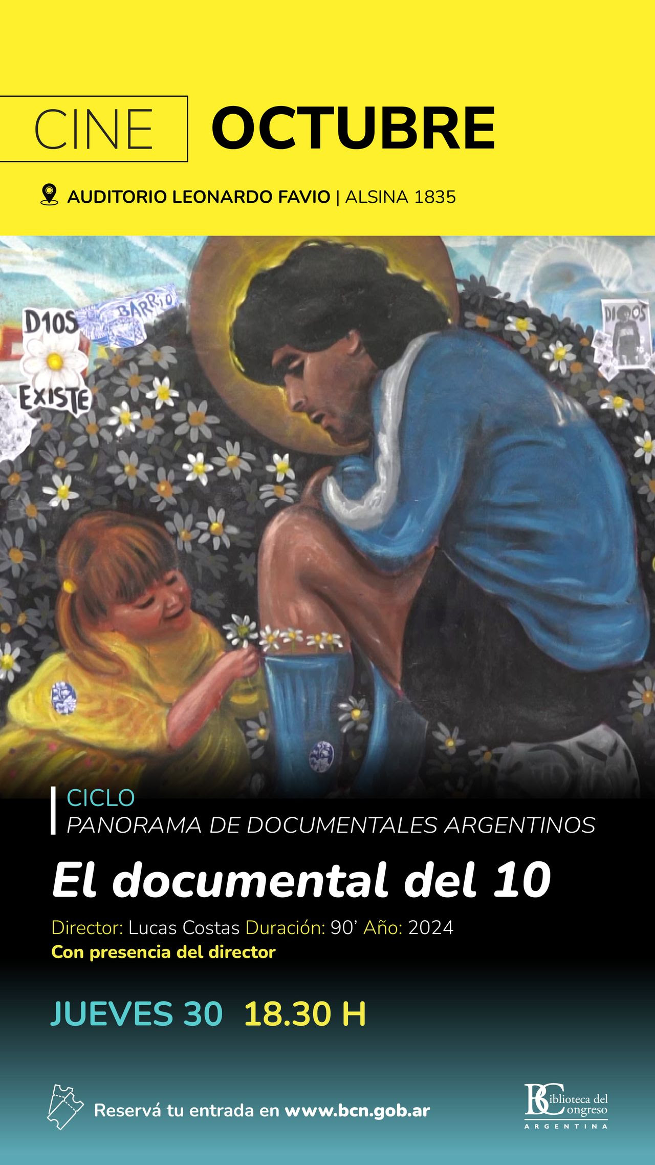 El film fue estrenado en 2024 y reúne testimonios de más de 40 artistas -músicos, escritores y poetas- que comparten cómo el astro del fútbol influyó en sus vidas y en sus obras. La proyección forma parte del ciclo “Panorama de documentales argentinos” que la BCN propone en octubre y contará con la presencia del director.