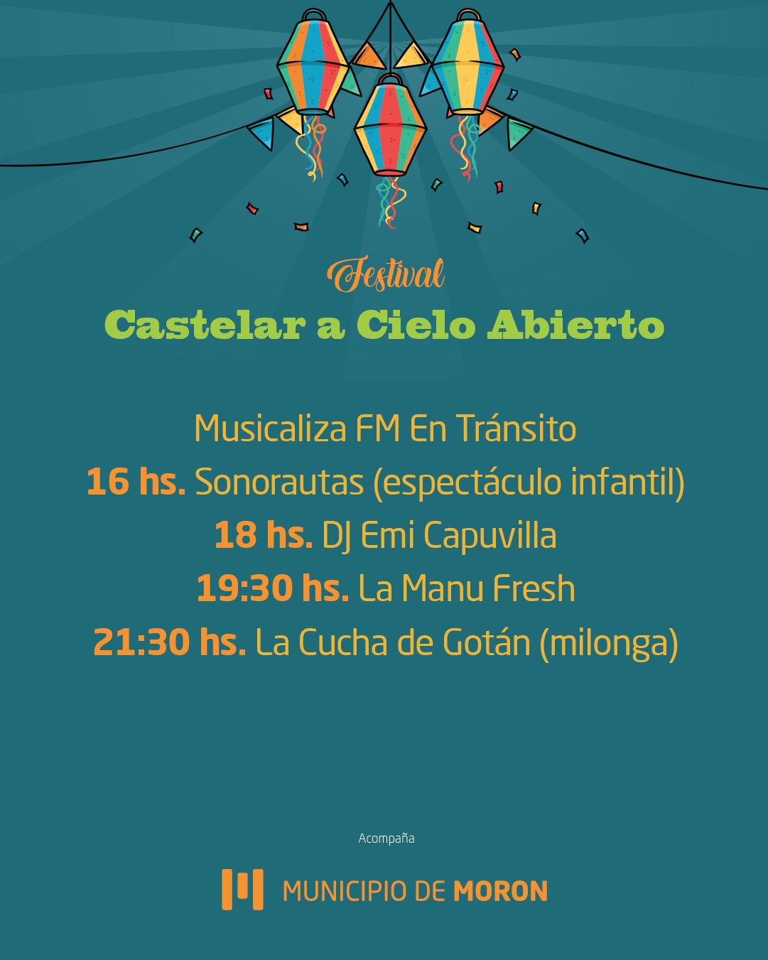 El Municipio de Morón invita a la comunidad a participar de “Castelar a Cielo Abierto”, una jornada cultural abierta y gratuita que promueve el encuentro entre vecinos y vecinas y fortalece el comercio local. El evento reúne gastronomía, diseño, espectáculos artísticos y actividades para toda la familia, en un ambiente creativo y cercano.
