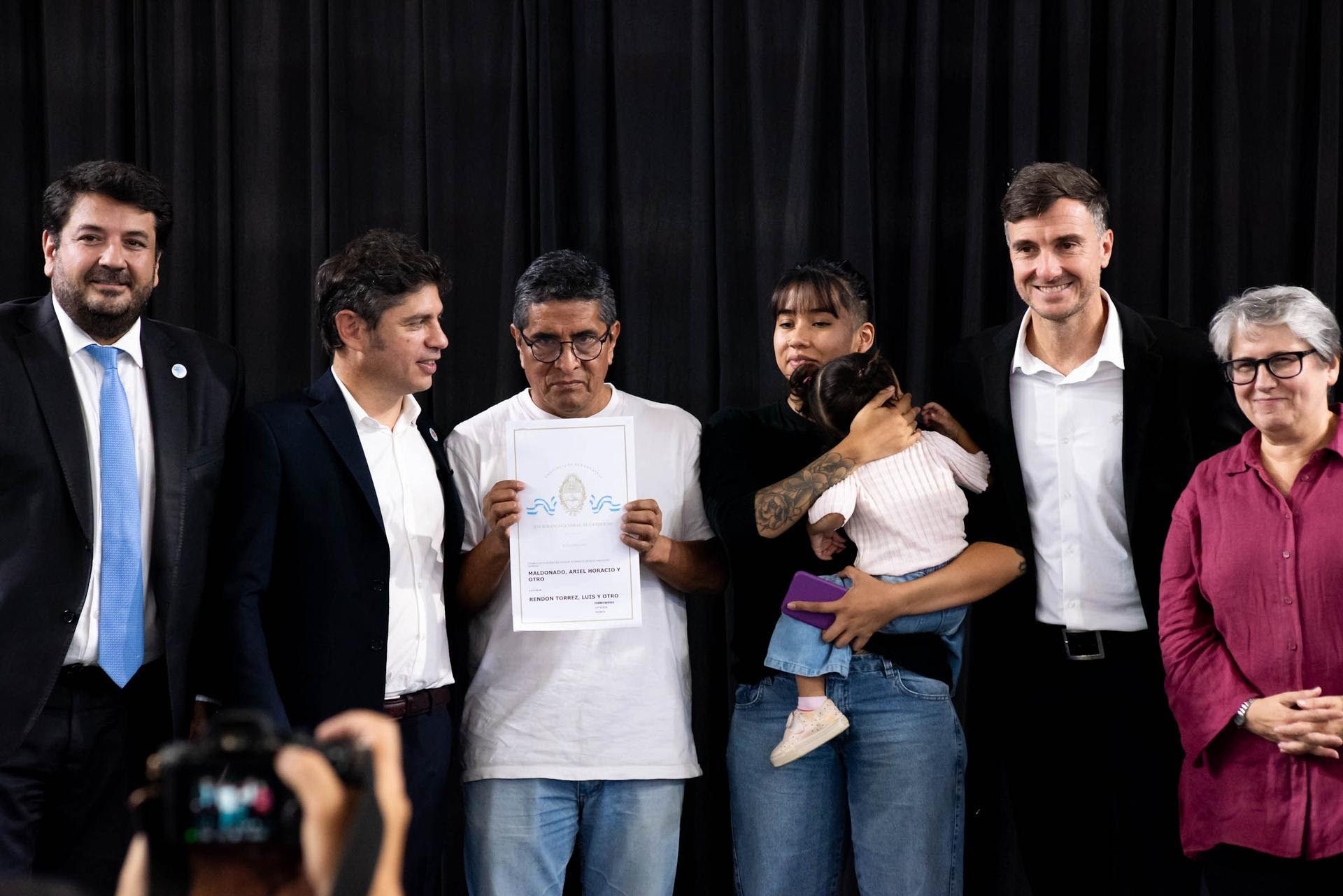 El intendente Lucas Ghi y el gobernador de la Provincia de Buenos Aires, Axel Kicillof, encabezaron el acto de entrega de 430 escrituras sociales y gratuitas, una política pública que garantiza el acceso a la vivienda y el acceso al sueño de la casa propia para cientos de familias de Morón.