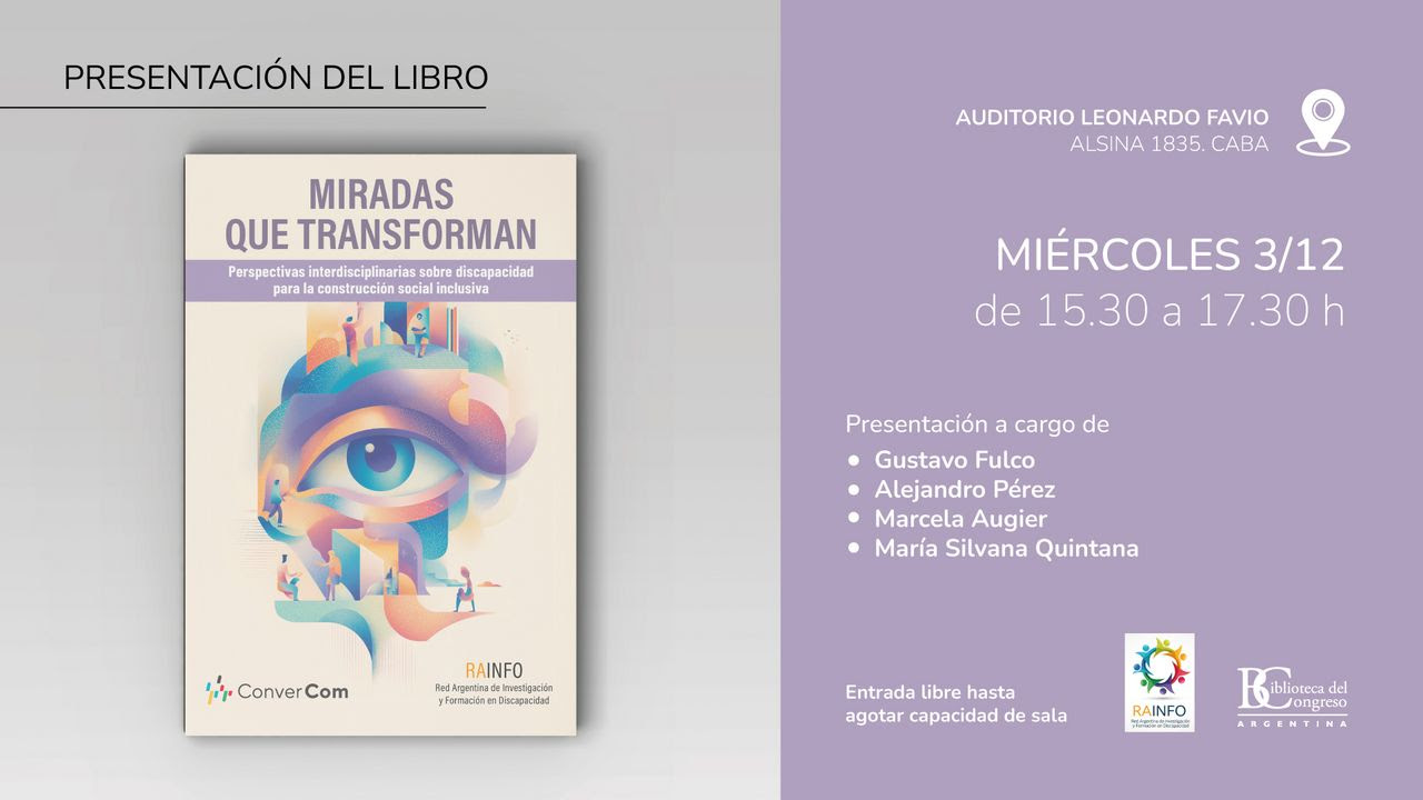 El miércoles 3 de diciembre, a las 15.30 h, en el Auditorio Leonardo Favio, tendrá lugar la presentación del libro Miradas que transforman, un proyecto colectivo nacido en el ámbito del Doctorado en Discapacidad de la Universidad Favaloro. La obra propone repensar la discapacidad desde un enfoque de derechos, autonomía y participación plena, invitando a interpelar paradigmas y abrir nuevas preguntas sobre la inclusión y la justicia social. Participarán de la presentación Gustavo Fulco, Alejandro Pérez, Marcela Augier y María Silvina Quintana, autores y especialistas que integran este trabajo colectivo junto a otros creadores.